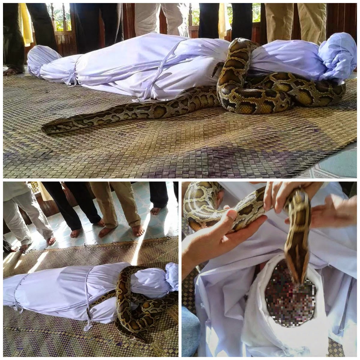 4 GAMBAR MENGERUNKAN ULAR DITEMUI DALAM KAIN KAFAN BERSAMA MAYAT
